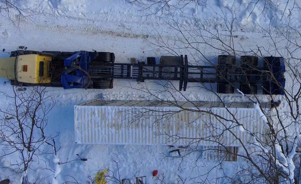 The container was located at a remote job site with no loading equipment available. Instead of coordinating additional cranes or forklifts, our Megalift sidelifter allowed us to self-load the container directly from the ground. This not only simplified the process but significantly reduced extra handling costs for the customer. Even with snow-covered terrain, the Megalift performed reliably, providing a safe and efficient lift.